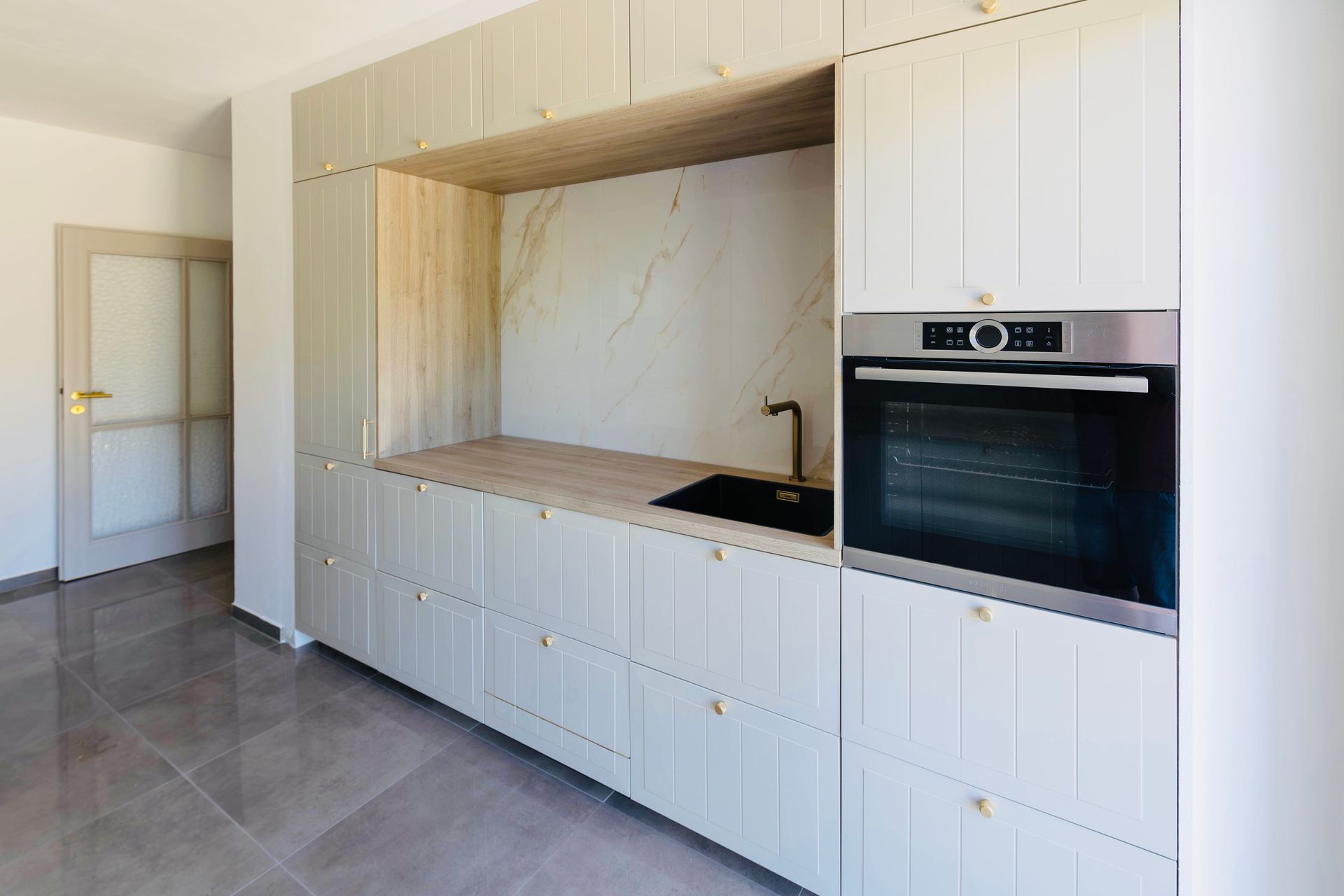 Auch die Küche weiß zu begeistern: Sie bietet ausreichend Platz und ist mit einer hochwertigen Einbauküche ausgestattet, die durch viel Stauraum und eine großzügige Arbeitsfläche überzeugt. Besonders praktisch: Die Arbeitsfläche geht nahtlos in eine elegante Theke über, an der zwei Personen bequem Platz finden – ideal für ein schnelles Frühstück oder ein Glas Wein am Abend. Der direkte Zugang zum kleinen Küchenbalkon macht den Start in den Tag perfekt – ob beim Morgenkaffee oder einem entspannten Brunch im Freien.